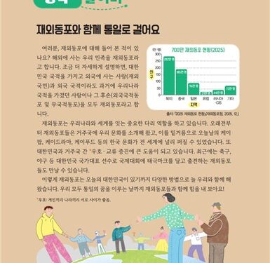 재외동포청(청장 김경협)은 2026년부터 사용되는 초등학교 6학년 도덕 국정교과서에 재외동포 관련 내용이 수록됐다고 3일 밝혔다.