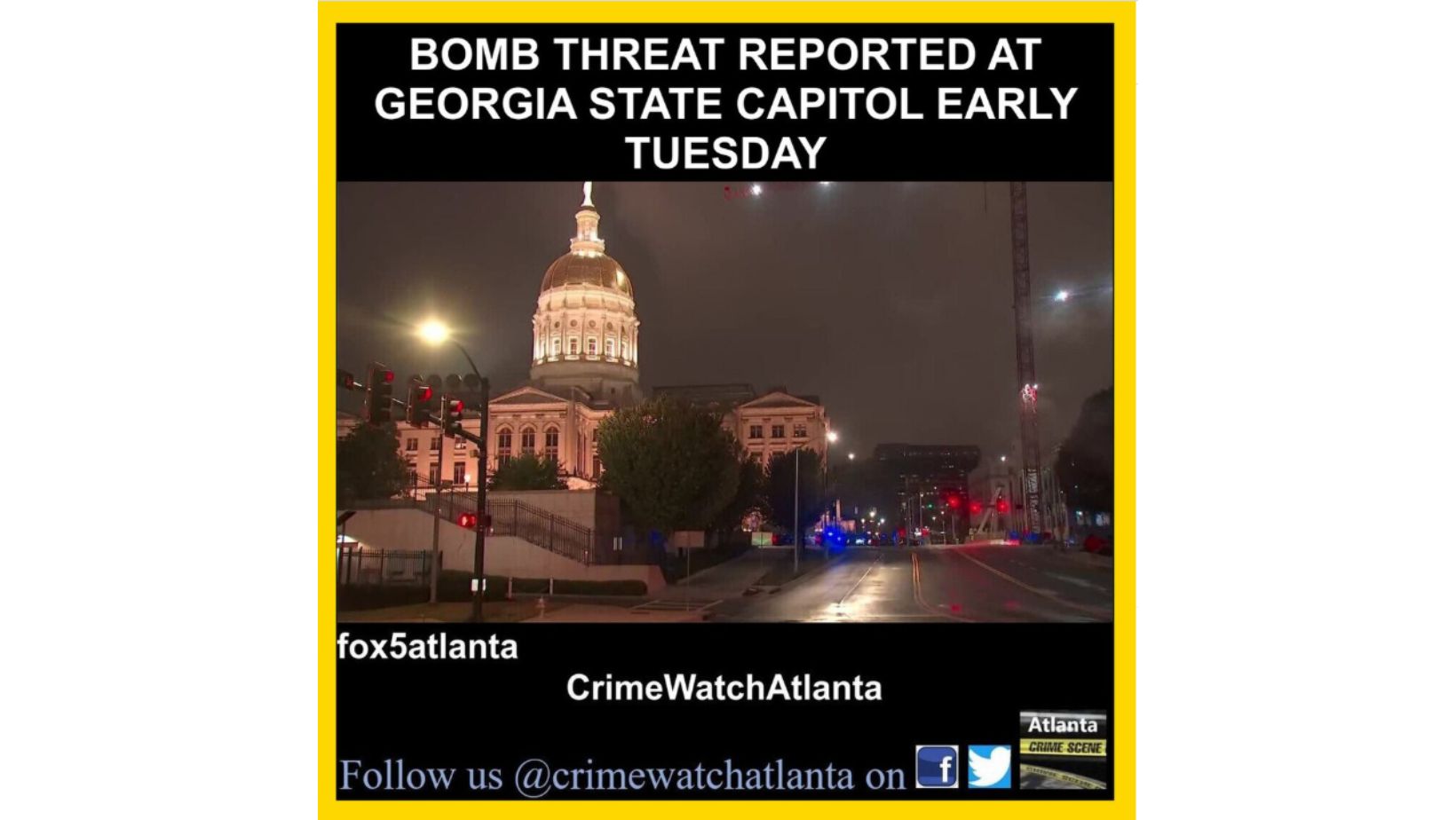 애틀랜타 경찰국(APD)과 조지아 주의사당 경찰국(Georgia Capitol Police Department)은 오전 2시께 폭탄 위협 신고를 받고 현장에 출동했으며, 약 3시간 동안 수색 작업을 진행했다. 경찰은 오전 5시경까지 현장을 통제했다.