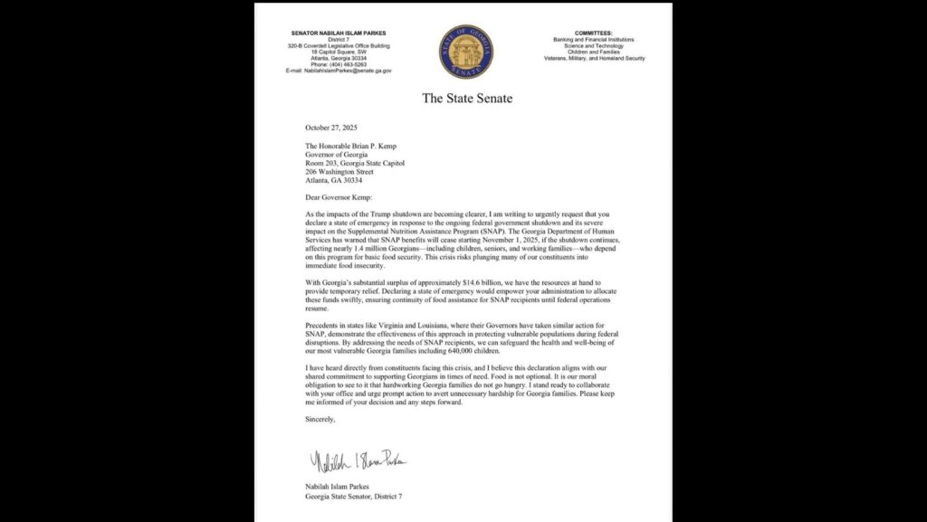 조지아 민주당 소속 주의원들과 제이슨 에스테베스 주지사 후보는 브라이언 켐프 주지사에게 주정부의 146억 달러 규모 예산 흑자 일부를 긴급 투입해 SNAP 지원을 유지할 것을 요구했다.