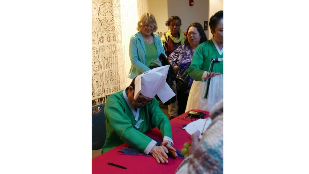닥나무로 만든 한지를 이용한 종이접기 시연[스토니브룩대 찰스 왕센터 제공]