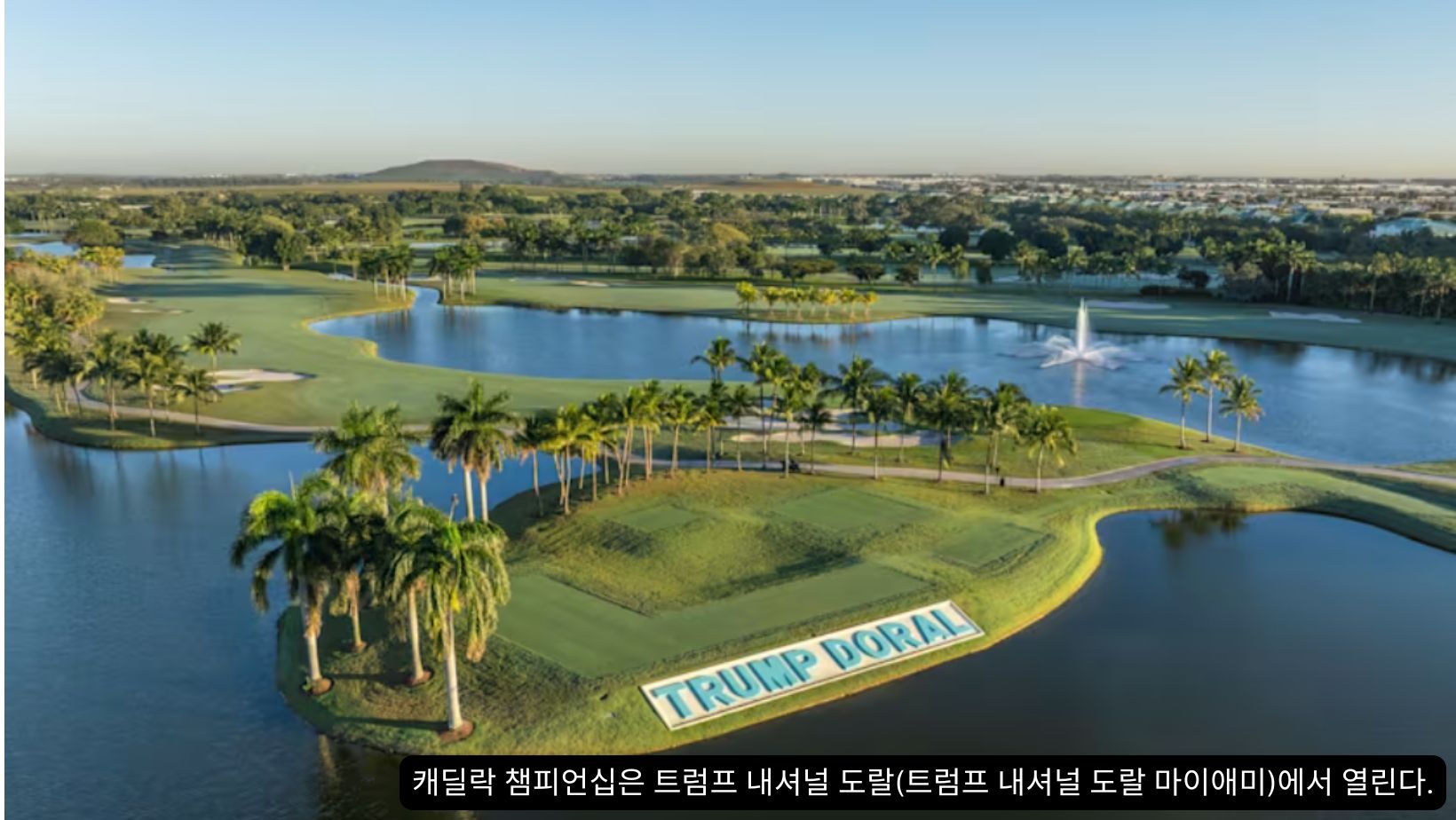 새로운 시그니처 대회인 ‘캐딜락 챔피언십’은 내년 5월 1일부터 4일까지 미국 플로리다주 마이애미의 트럼프 내셔널 도럴에서 개최된다.