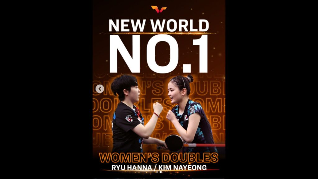 김나영-유한나 조는 2일(현지시간) 발표된 올해 ITTF 10주 차 여자복식 세계랭킹에서 중국의 왕만위-콰이만 조를 2위로 끌어내리고 1위로 한 계단 올라섰다.