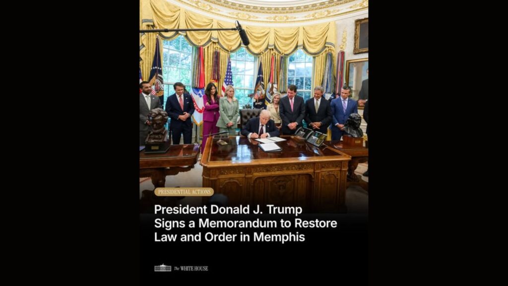 트럼프 대통령은 이날 백악관 집무실에서 이같이 말한 뒤 ‘멤피스 안전 태스크포스 구성’을 지시하는 대통령 각서에 서명했다.