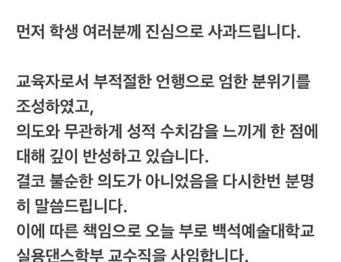 14일 가요계에 따르면 팝핀현준은 전날 자신의 인스타그램에 “오늘부로 백석예술대학교 실용댄스학부 교수직을 사임한다”며 “학생 여러분께 진심으로 사과드린다”고 밝혔다.