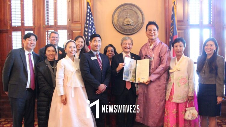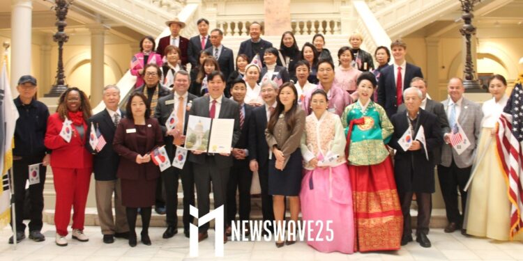 ‘미주한인의 날’로 지정된 13일, 조지아 주청사에서 애틀랜타 한인들이 모여 기념식을 열고 한인 이민 123주년의 의미를 되새겼다.