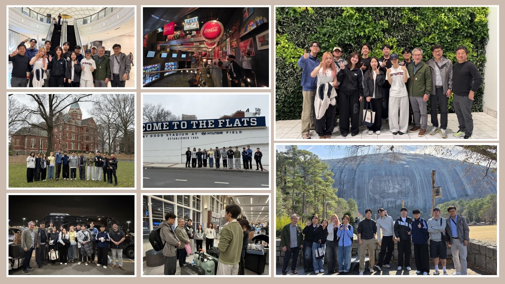 지난 16일 올랜도를 출발해 애틀랜타에 도착한 방문단은 환영 만찬을 갖고 애틀랜타의 첫날 밤을 맞았다. 애틀랜타 체류 기간 동안 학생들은 코카콜라 월드, 킹센터, 센테니얼 올림픽 파크, 조지아텍(Georgia Tech) 방문, 애틀랜타 브레이브스의 홈구장 방문, 스톤마운틴 등을 방문하며 미국의 역사와 인권, 산업 발전 과정을 체험했다.