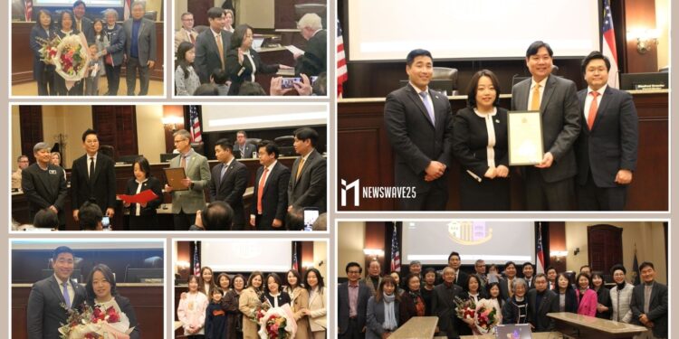 특히 이날 취임식에서는 1월 13일 ‘미주 한인의 날’ 제123주년을 기념하는 공식 선포식이 함께 진행돼 의미를 더했다. 박 의원과 위트록 시장은 선언문을 한국어와 영어로 번갈아 낭독했으며, 둘루스 시청사 역사상 처음으로 한국어 공식 선언문이 울려 퍼지는 장면이 연출됐다.