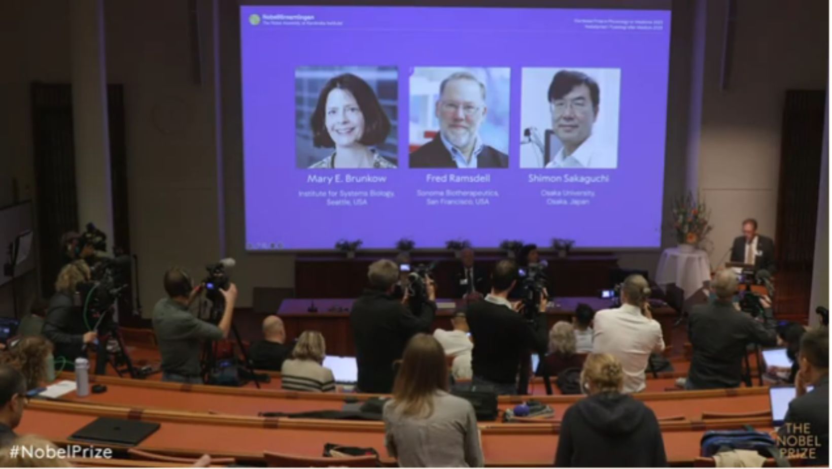 스웨덴 카롤린스카연구소 노벨위원회는 6일 올해 수상자로 메리 E. 브런코(Institute for Systems Biology, 시애틀), 프레드 램스델(Sonoma Biotherapeutics, 샌프란시스코), 시몬 사카구치(오사카대학)를 공동 선정했다고 발표했다.