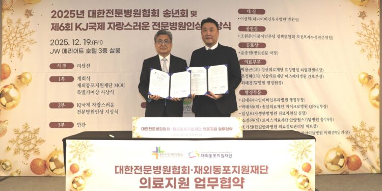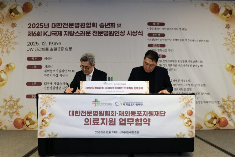대한전문병원협회(회장 윤성환)와 재단법인 재외동포지원재단(이사장 강윤식)이 전 세계 700만 재외동포들의 의료 접근성 강화와 건강 증진을 위한 협력 체계를 구축했다.
