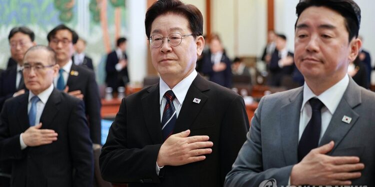 국민의례하는 이재명 대통령 [청와대통신사진기자단]