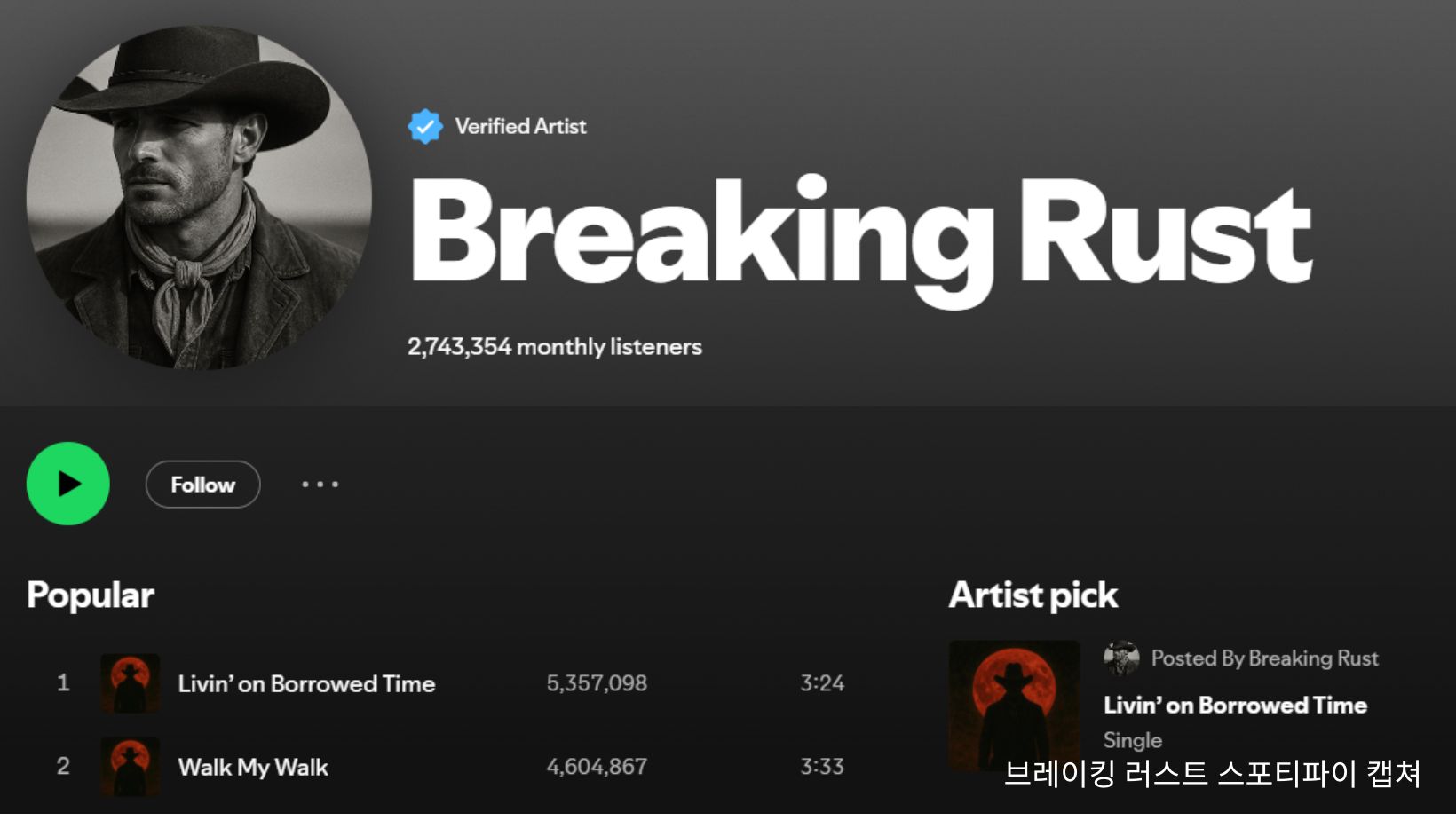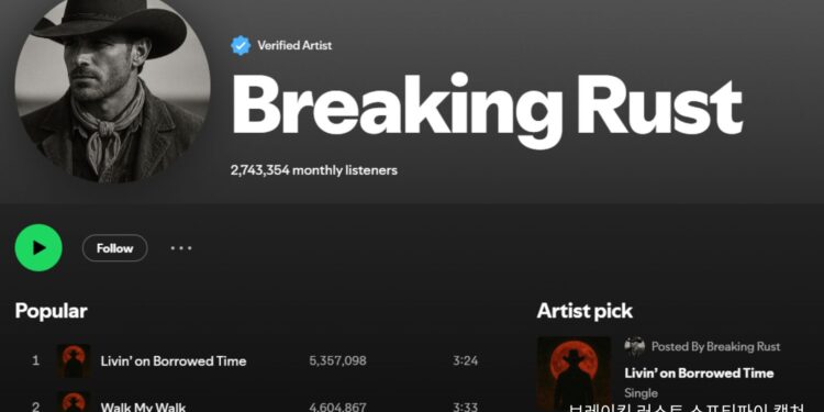 브레이킹 러스트, 빌보드 컨트리 차트 정상…AFP “AI로 규정된 가수”