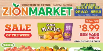 Read moreDetails둘루스 소재 시온마켓이 11월 13일(목)부터 19일(수)까지 일주일간 특별 할인 행사를 진행한다. 이번 행사에서는 오리온 카스타드(30입 박스)를 $8.99에 특가 판매하며, 신선한...
