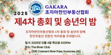Read moreDetails제4차 정기총회 및 송년의 밤 행사 조지아한인부동산협회(GAKARA, 회장 샤론 황)가 2025년 제4차 정기총회 및 송년의 밤 행사를 오는 12월 4일(목)...