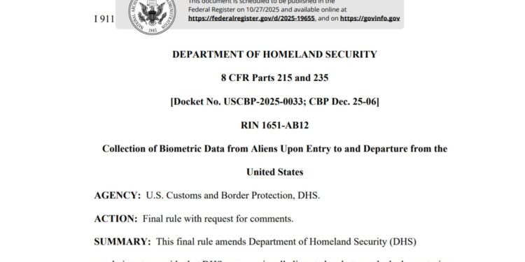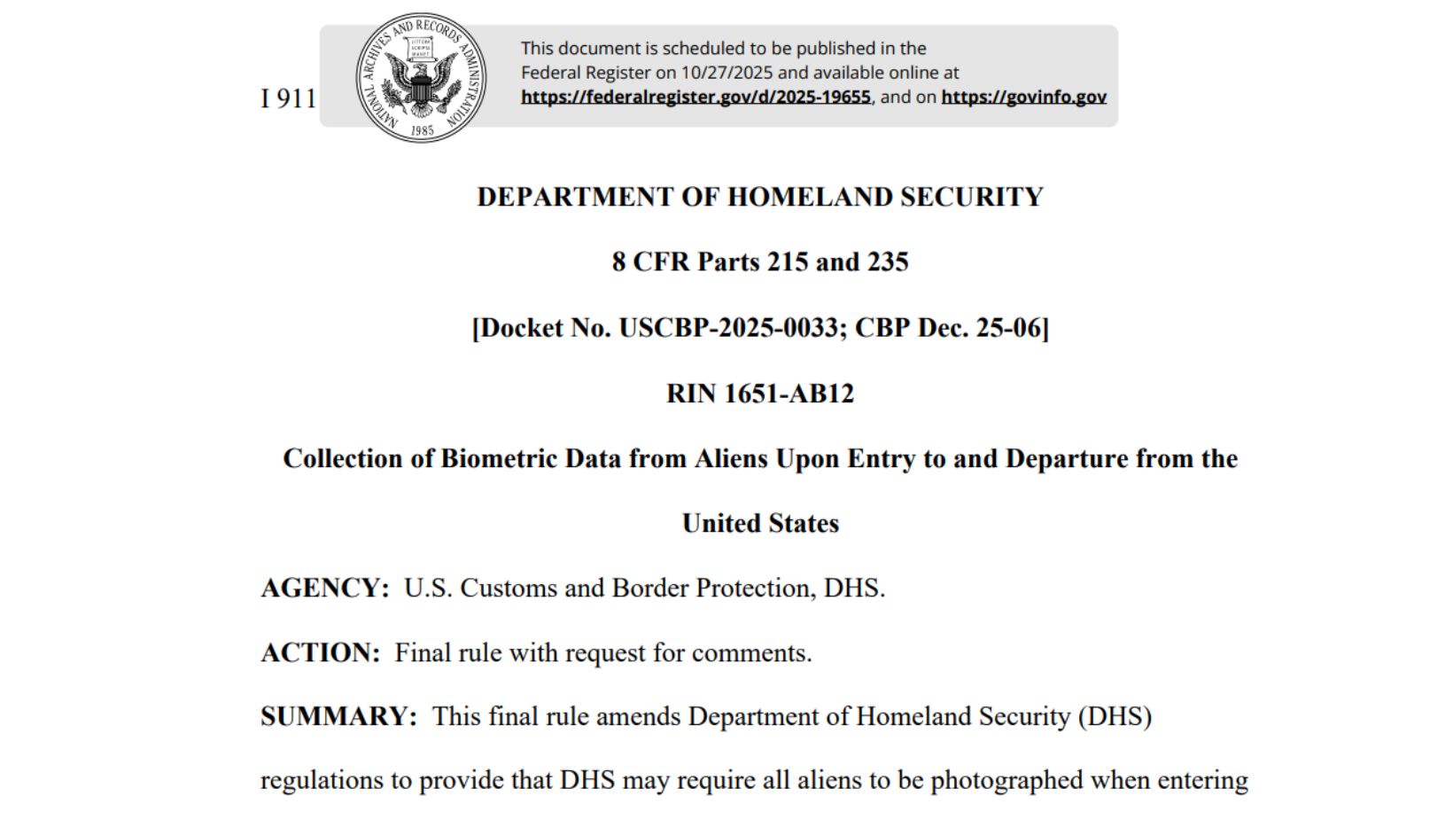 새 규정은 미국 내에 거주하는 이민자와 영주권자, 방문 외국인 등 모든 비시민권자에게 적용되며, CBP는 이들의 출입국 시 사진을 촬영하고, 필요 시 추가 생체정보를 수집할 수 있다.