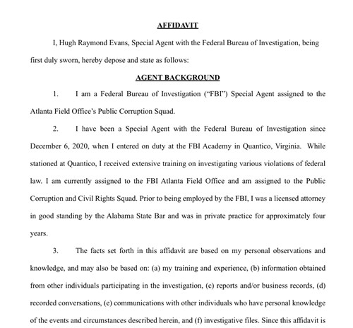 FBI가 법원에 제출한 조지아주 선관위 압수수색 영장 신청서[조지아주 법원 제공]
