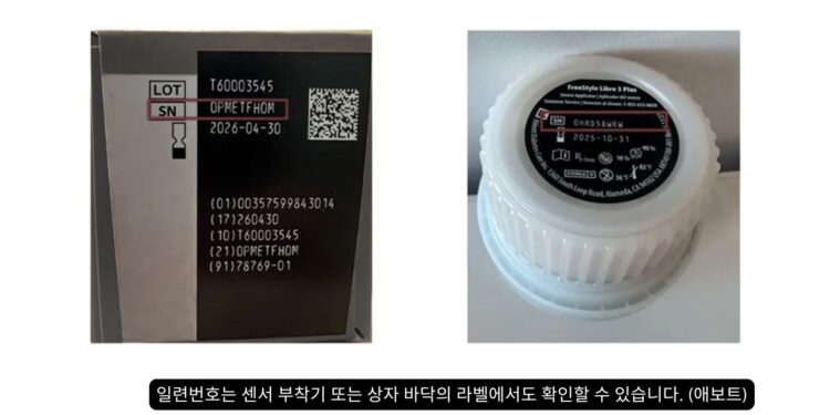 소비자는 www.freestylecheck.com에서 ‘Confirm Sensor Serial Number’를 선택해 보유 중인 센서의 일련번호를 확인할 수 있다. 일련번호는 앱·리더기 화면, 센서 어플리케이터 하단, 또는 제품 상자 라벨에서 확인 가능하다.