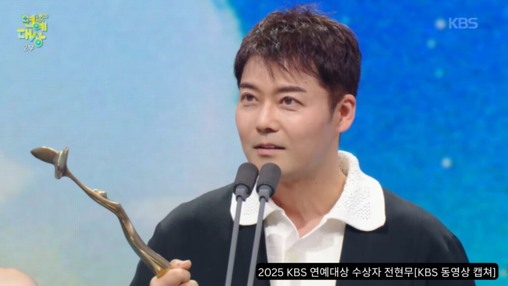 전현무는 21일 서울 영등포구 여의도동 KBS 신관 공개홀에서 열린 ‘2025 KBS 연예대상’ 시상식에서 대상 수상자로 호명됐다.