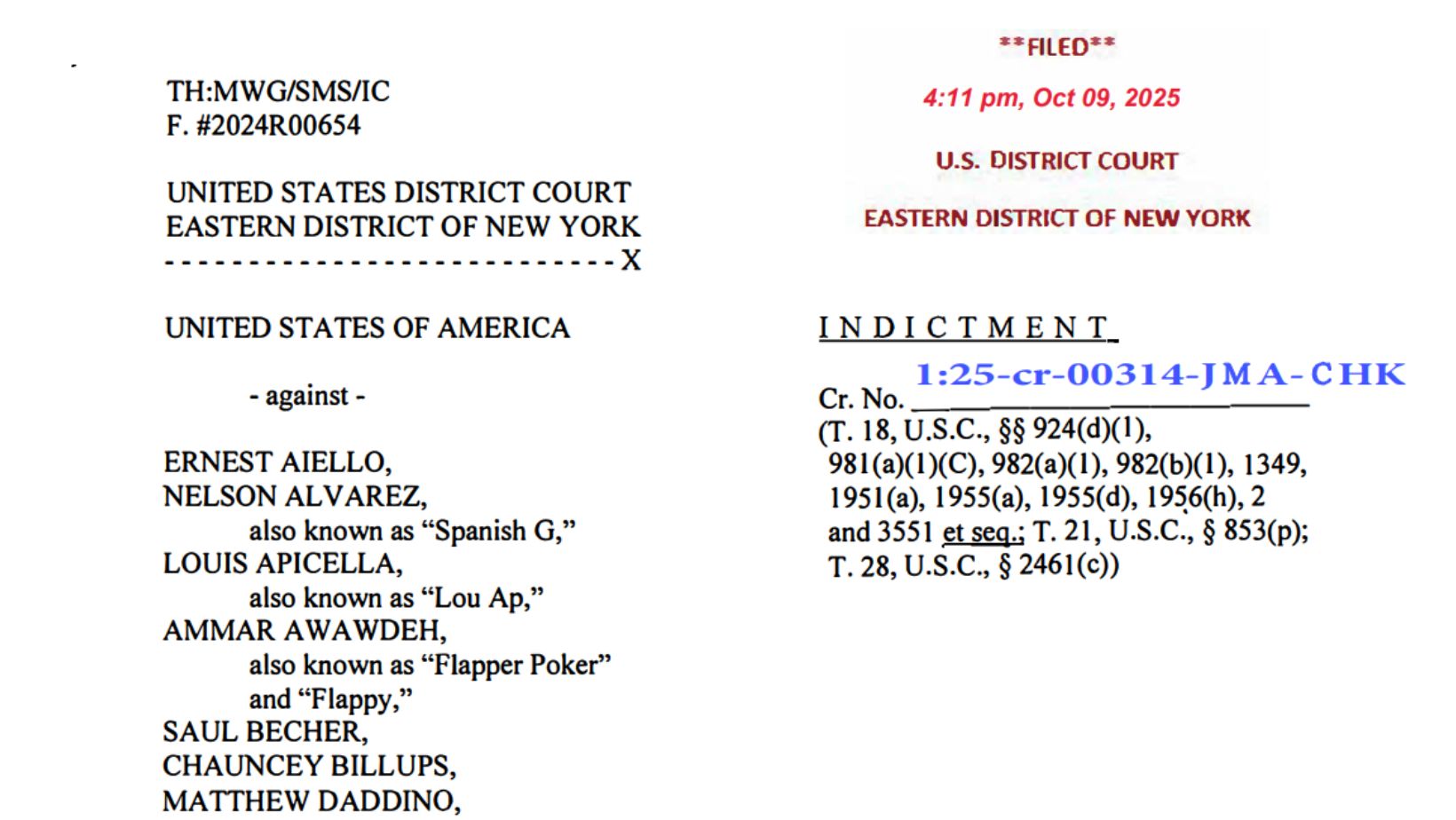 브루클린 연방 법원에서 31명이 뉴욕시, 뉴욕주 이스트햄튼 및 미국 전역에서 무선 기술을 이용한 불법 포커 게임 조작 혐의로 기소됐다. 체포된 피고인에는 라 코사 노스트라(LCN) 보나노, 감비노, 제노베세 조직범죄단 구성원과 관계자, NBA 포틀랜드 트레일블레이저스 감독 천시 빌럽스, 전 NBA 선수 데이먼 존스(“디”)가 포함됐다.