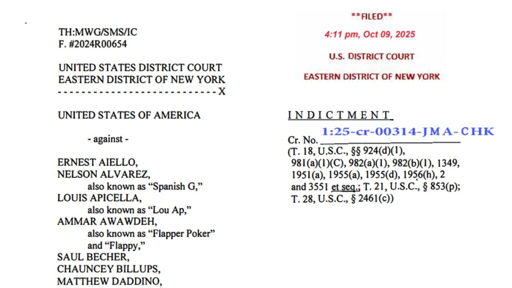 브루클린 연방 법원에서 31명이 뉴욕시, 뉴욕주 이스트햄튼 및 미국 전역에서 무선 기술을 이용한 불법 포커 게임 조작 혐의로 기소됐다. 체포된 피고인에는 라 코사 노스트라(LCN) 보나노, 감비노, 제노베세 조직범죄단 구성원과 관계자, NBA 포틀랜드 트레일블레이저스 감독 천시 빌럽스, 전 NBA 선수 데이먼 존스(“디”)가 포함됐다.