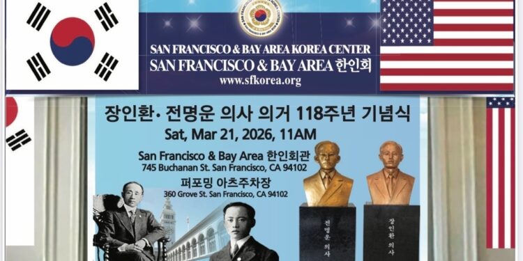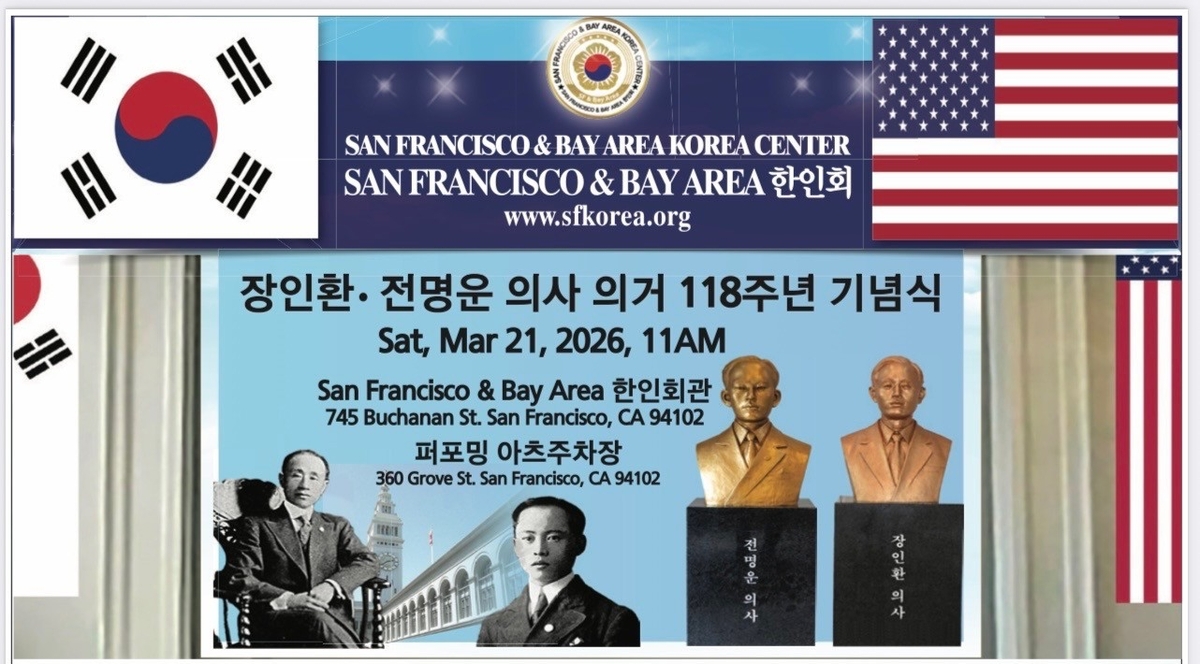 미국 샌프란시스코·베이지역 한인회(회장 김한일)는 장인환·전명운 의사의 의거 118주년 기념식을 오는 21일 오전 11시 샌프란시스코 한인회관에서 개최한다고 밝혔다.