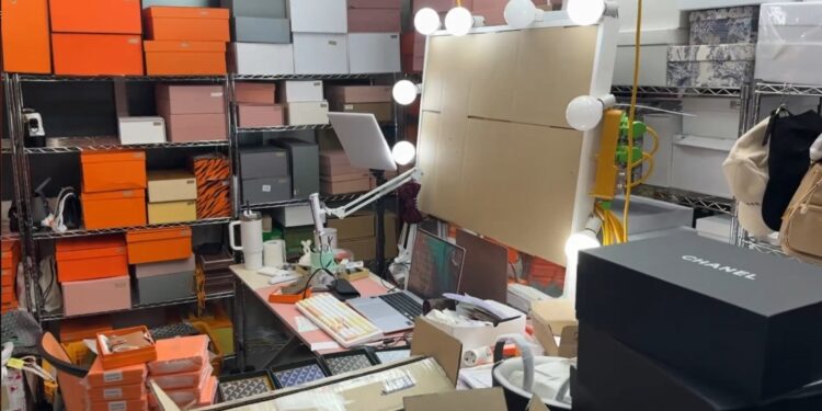 지난 1월 첩보를 입수한 경찰은 탐문수사 끝에 지난달 충남 천안에 위치한 이들의 ‘짝퉁’ 보관창고를 급습했고 라이브 방송 중이던 이들을 현행범 체포했다.