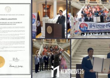 조지아주 브라이언 켐프 주지사가 대한민국 광복 80주년을 기념해 8월 15일을 ‘광복절'로 선포하는 공식 선언문을 애틀랜타 한인회에 전달했다. 박은석 회장이 이끄는 ...